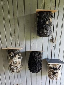 Tilan omien, luonnonlaitumia ja perinnebiotooppeja laiduntamalla hoitavien ahvenanmaanlampaiden villasta käytetään kaikki 100% eli hukkavillaa ei synny ollenkaan.